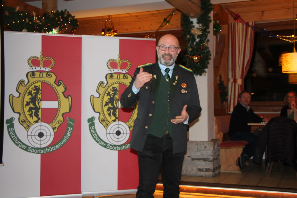 Wie bereits im Jahr 2015 traf sich die Salzburger Schützenfamilie in Puch beim Kirchenwirt um die erfolgreichen Sportler des Jahres 2025 zu ehren. Im Beisein der Bürgermeisterin und des Vizebürgermeisters der Gemeinde Puch wurde zum Auftakt einigen Funktionäre des heimischen SSC Puch für ihre jahrelangen Verdienste für den Verein gedankt und Verdienstmedaillen des Landesverbandes überreicht. In gewohnter Weise wurden in weiterer Folge von Peter Ettlbrunner als Moderator die erfolgreichen Landesmeister, österreichischen Meister und Staatsmeister vorgestellt und auf die Bühne geholt. Die Ehrenpreise wurden von unserem Landesoberschützenmeister Franz Puffer-Essl an die Sportler übergeben. Für die Verdienste im Landesverband wurden vor der Ehrung unserer international erfolgreichen Schützen noch Funktionäre des Landesverbandes mit Verdienstmedaillen des Landesverbandes ausgezeichnet. In seinen Schlussworten bedankte sich unser Landesoberschützenmeister bei allen Sportler und Funktionären für ihren Einsatz und wünschte für das Jahr 2026 allen Anwesenden wieder viele Erfolge und alles Gute.